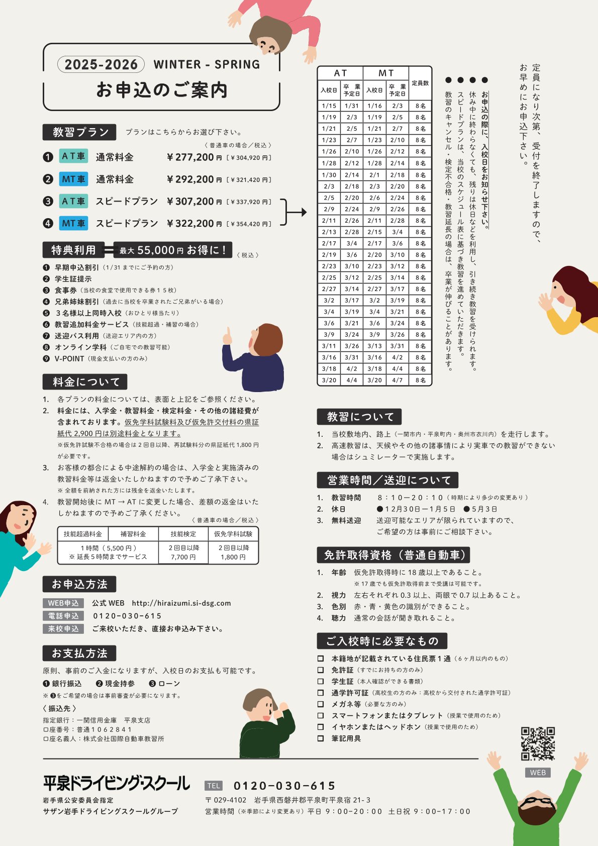 AT教習開始日 | AT卒業予定日 | MT教習開始日 | MT卒業予定日 | 定員 |